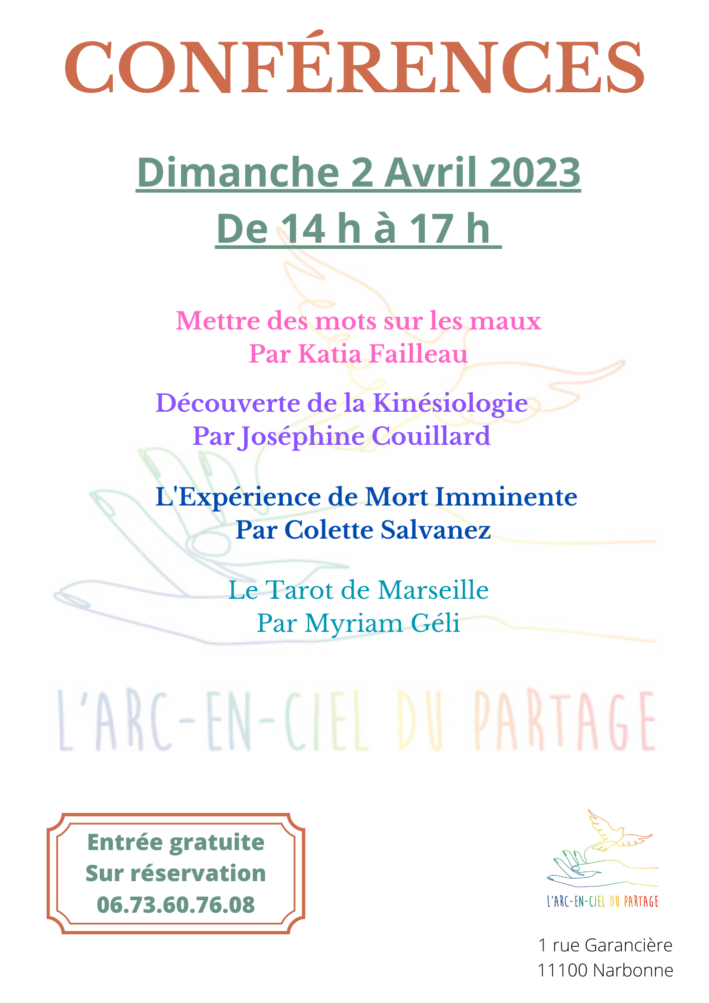 Conférence (gratuite) des différents thérapeutes de l'association. Réservation 06.73.60.76.08