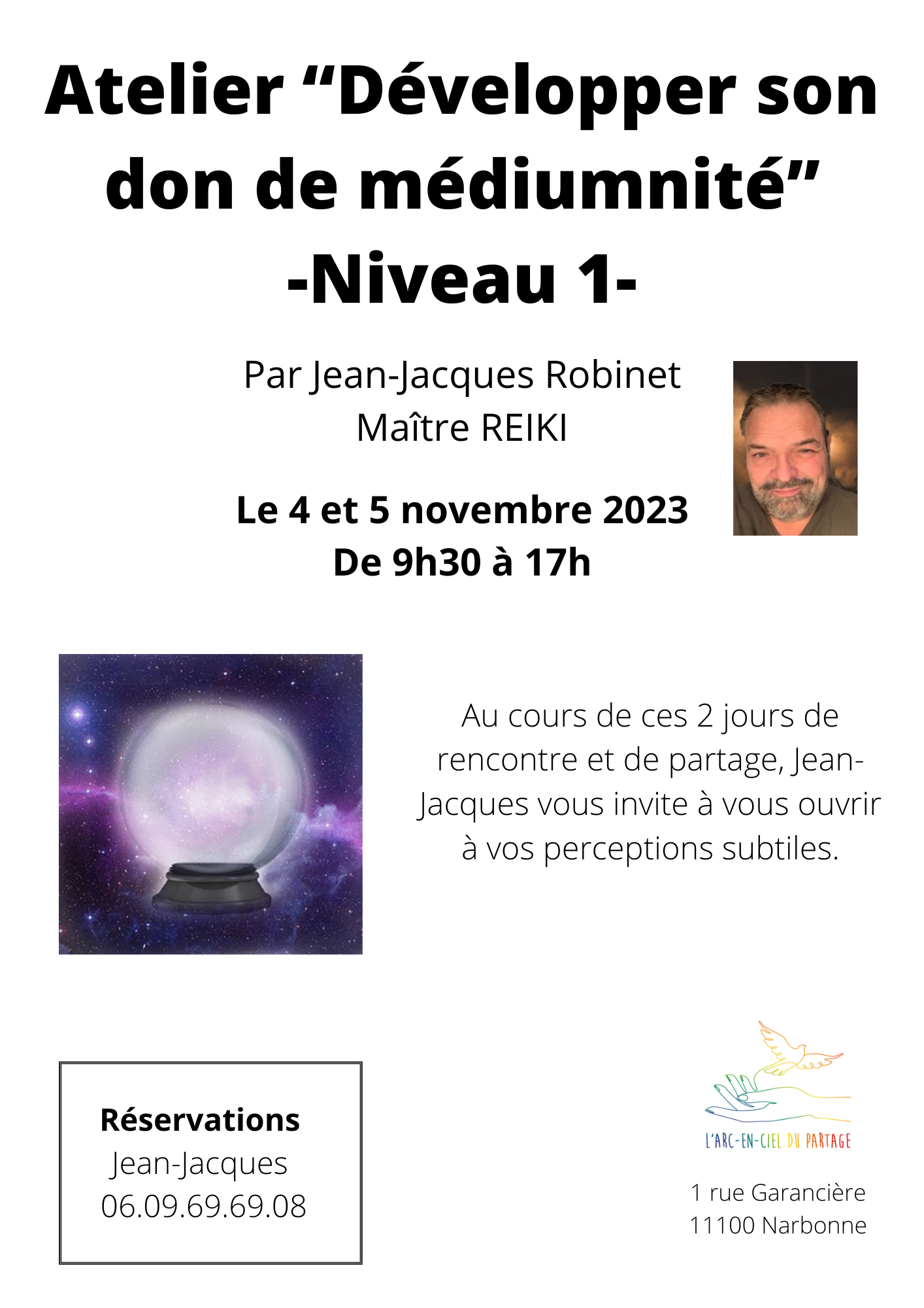Par Jean-Jacques Robinet Au cours de ces 2 jours de rencontre et de partage, Jean-Jacques vous invite à vous ouvrir à vos perceptions subtiles.